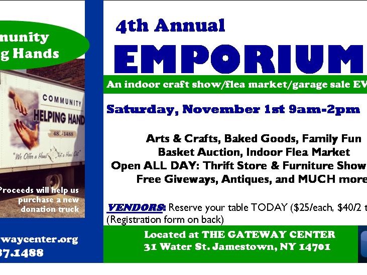 Wheels and Deals Bag Sale at Community Helping Hands! May 1-16. $1 per bag, plus specials on Bikes. Located at the Gateway Center, 31 Water Street off Foote Avenue. Tuesday through Friday, 10-4; Saturday, 10-12. New items put out every day! Please call (716) 487-1488 for more information or visit chhny.org.
